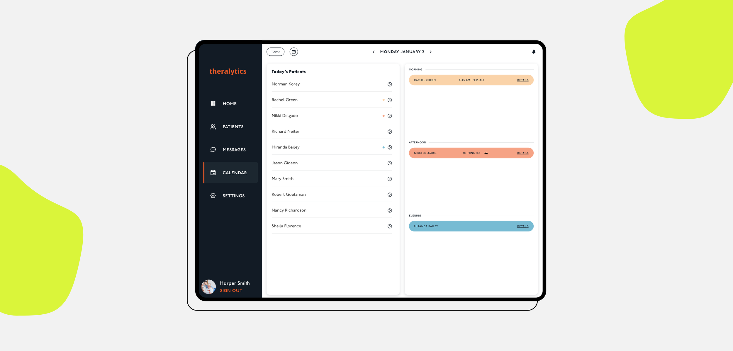 focusing on patient appointment organization while emphasizing the ability to note-take and prepare for a session.