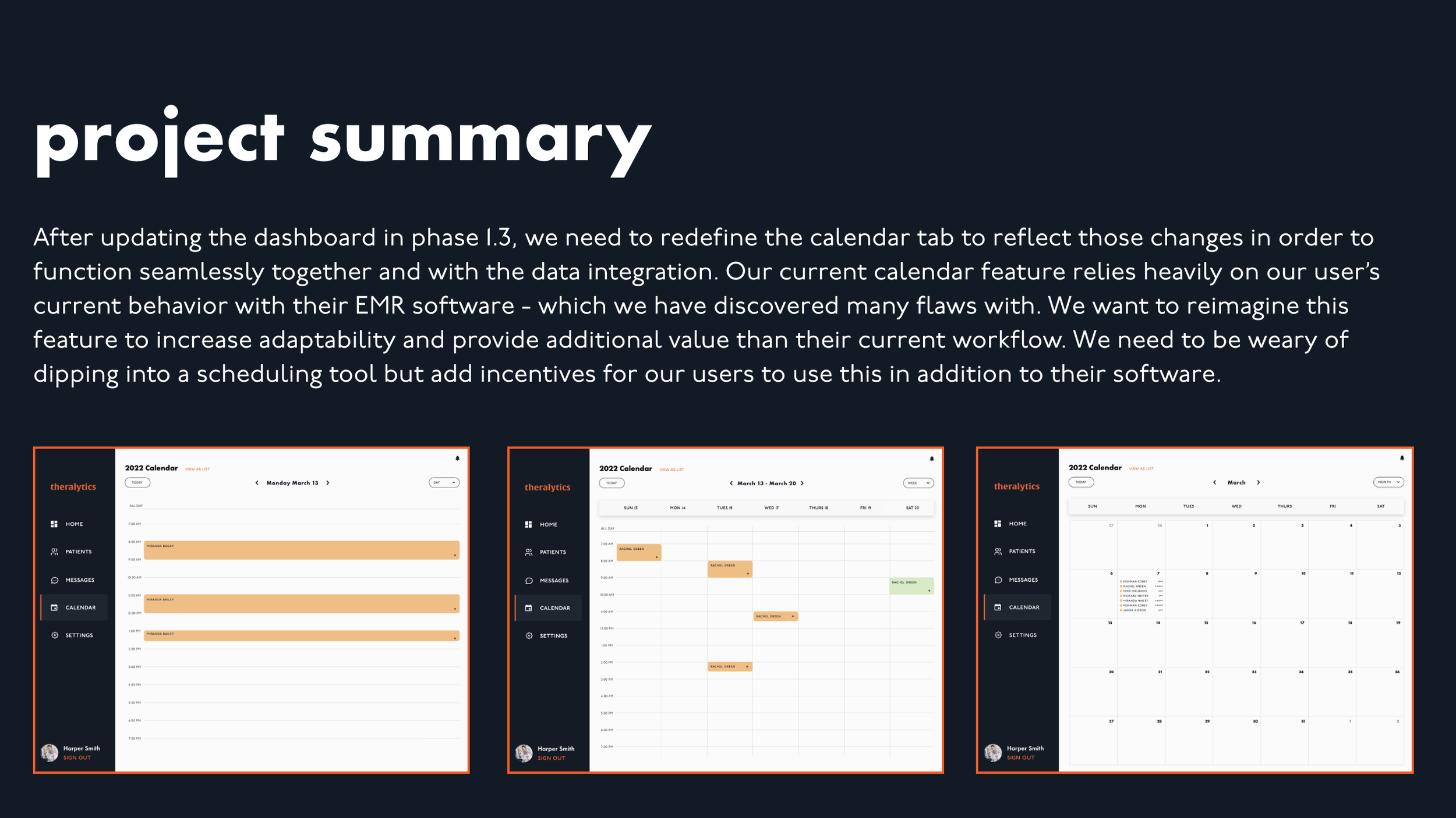 We discovered a lot of our user’s pain points derived from their current systems and electronic medical records. Their software was designed for accounting purposes, not for providing efficient care. In fact, it hasn’t even been updated since the early 2000’s. Health-tech in this space has been completely left behind. It was our mission to enhance their current process and create software made for clinicians.