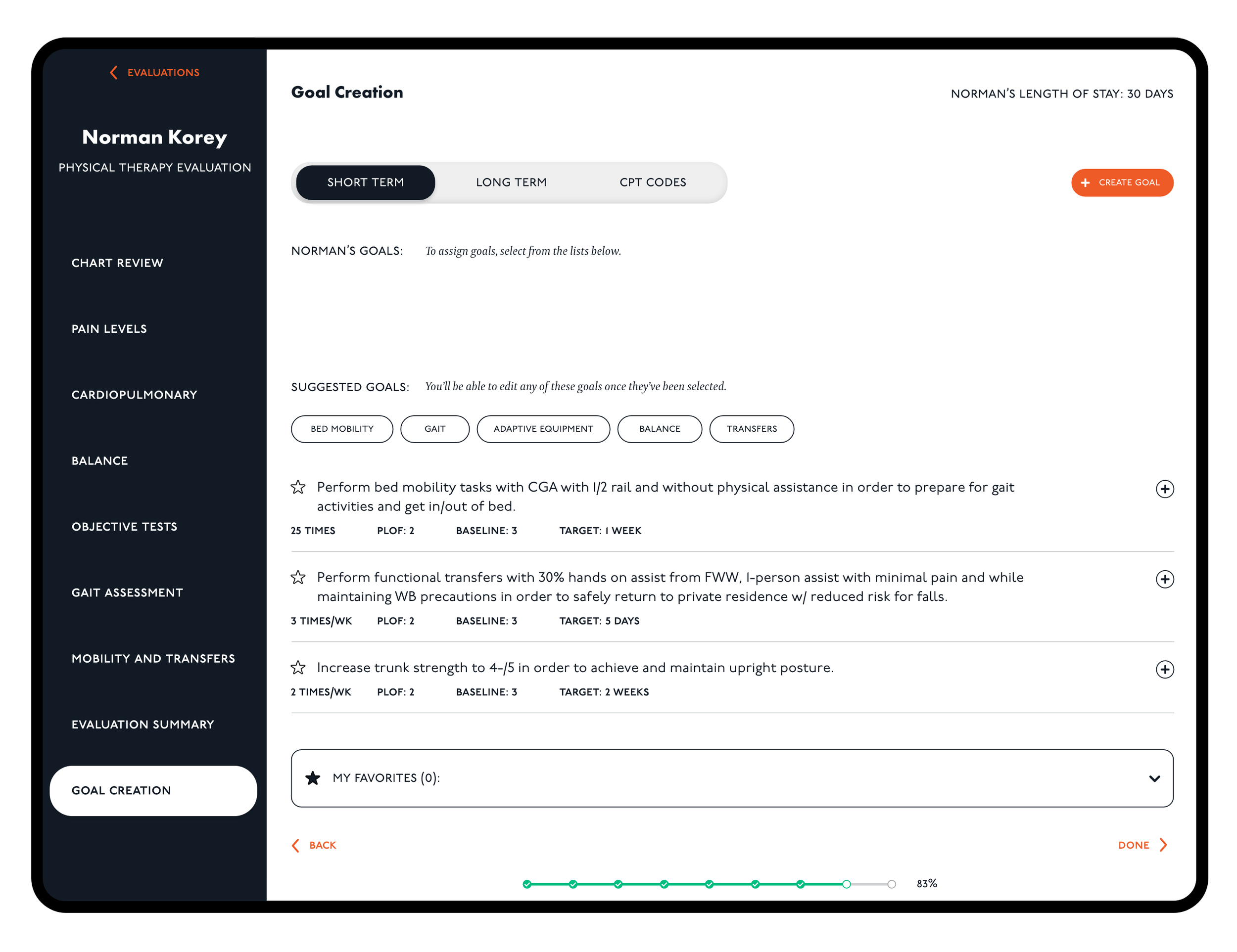 As a founding employee, I was given the opportunity to work with a small team and build this product from the ground up. The initial task was to create a predictive analytics tool to generate better patient outcomes in post-acute care. Our mission was strictly patient-driven. While that still remained at the foundation of our work, we had to adapt to how deep the problems stemmed. So we started with the therapists. Our goal was to support rehabilitation therapists by creating tools to support them in focusing more on what really matters: patient health.